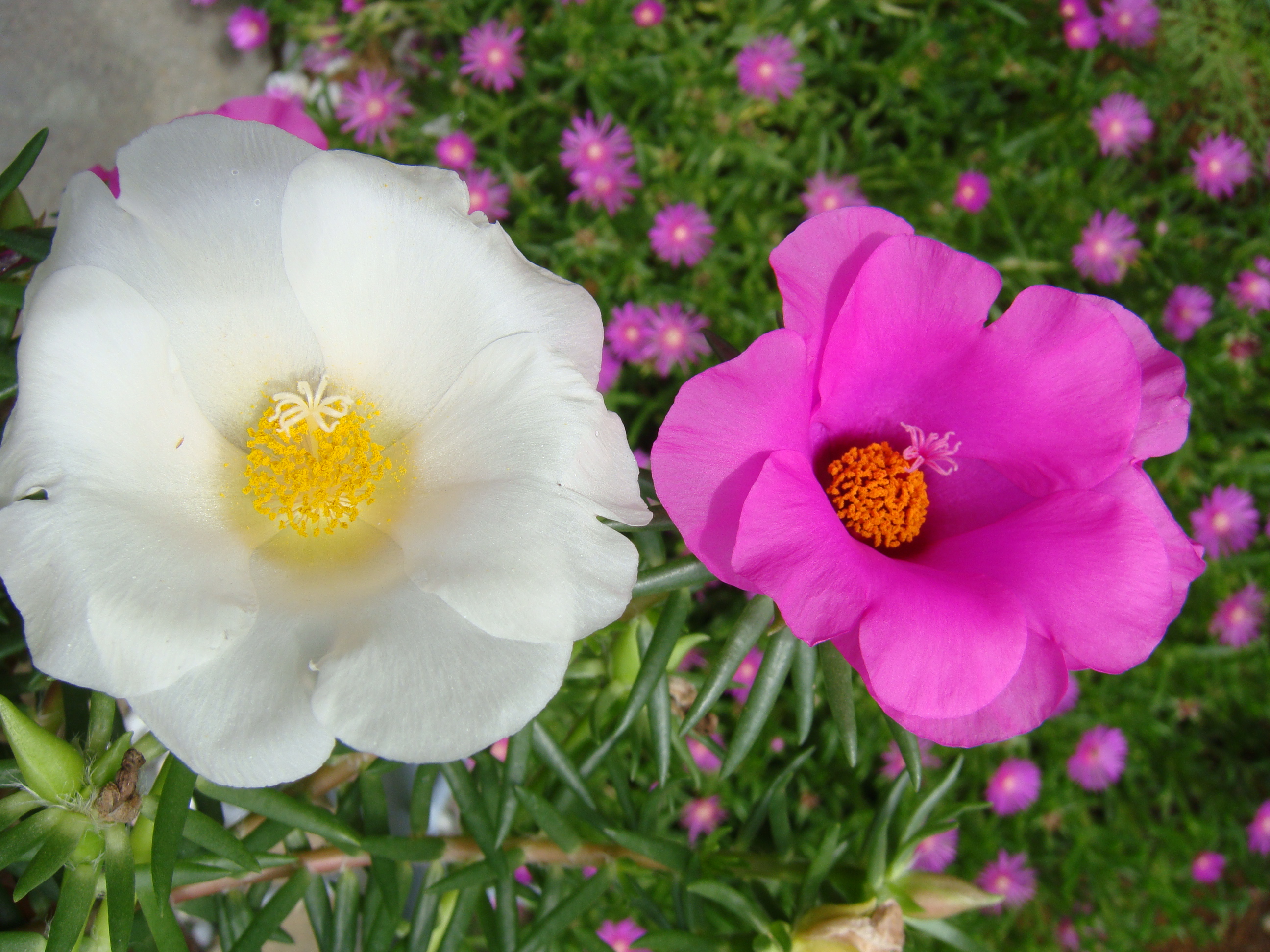 【余談】・・・ ところで、松葉ボタンの花の中に、これまた花(「めしべ」だとか)みないな可愛らしいのがちょこんと咲いてるんですネ♪ 初めて気づいちゃいました!